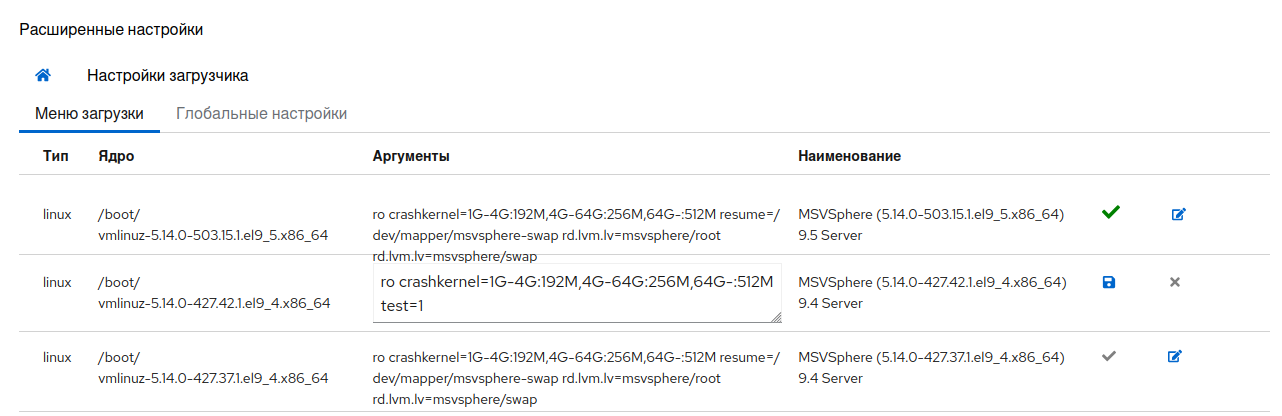 Для того чтобы изменить загружаемое ядро по умолчанию, нажмите иконку на соответствующей записи. После нажатия во всплывающем окне подтвердите свой выбор.