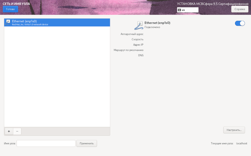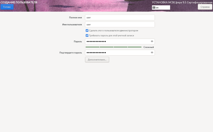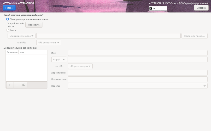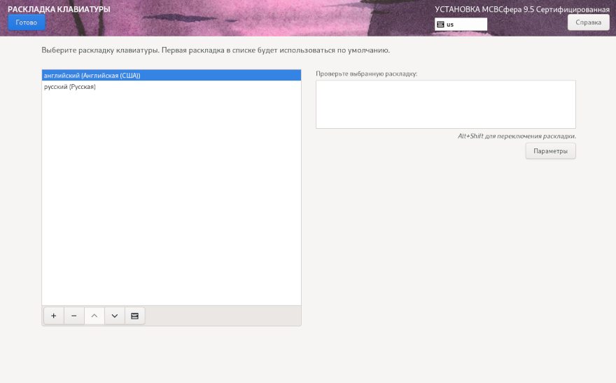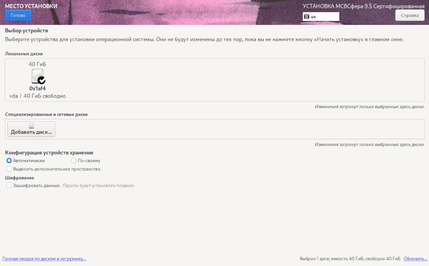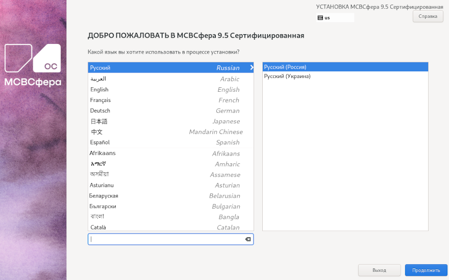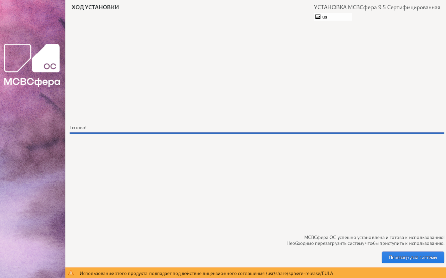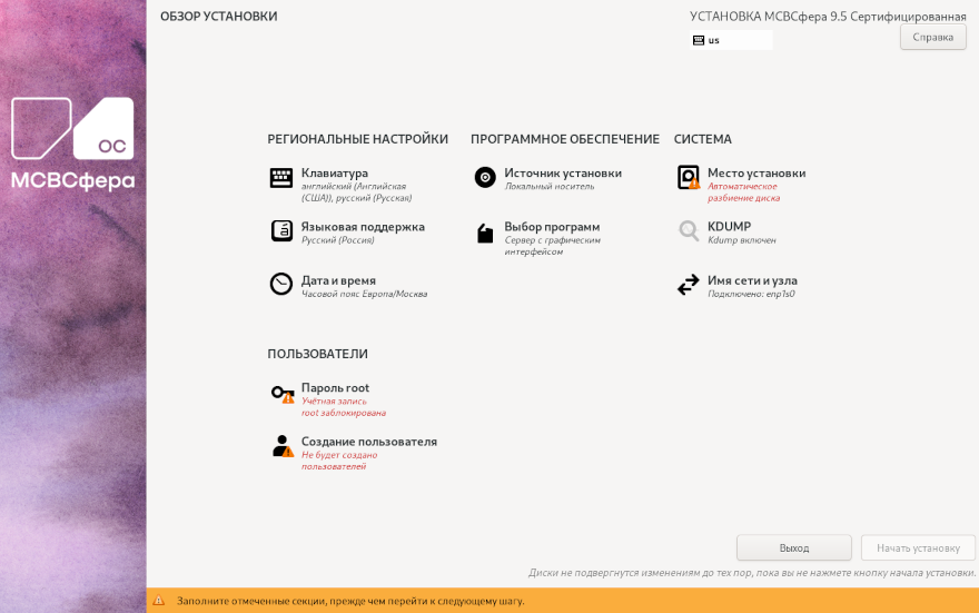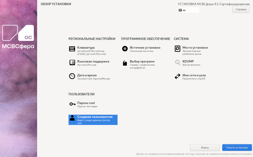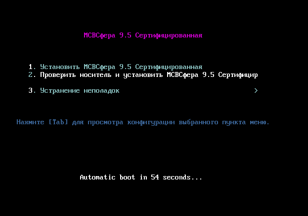 Рассмотрим пример установки операционной системы «МСВСфера» 9.5.