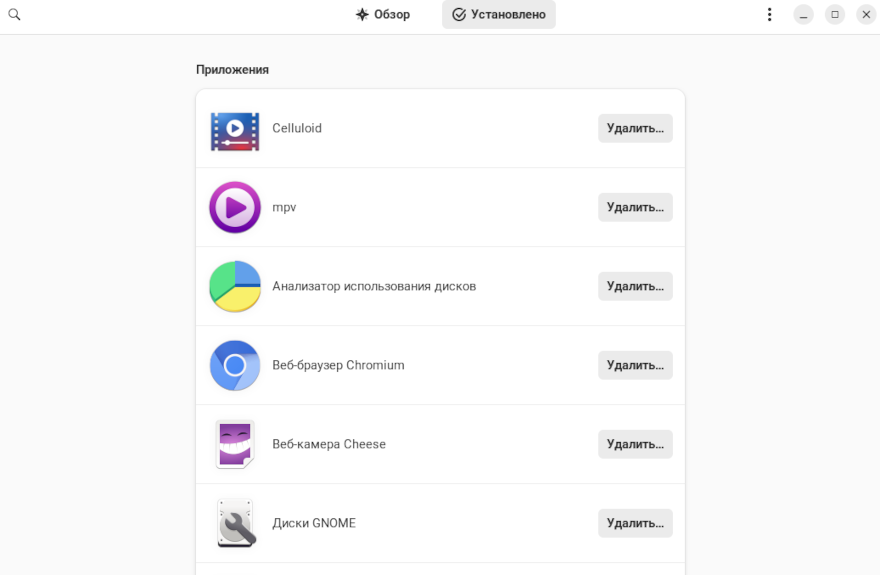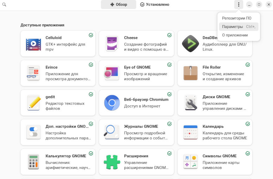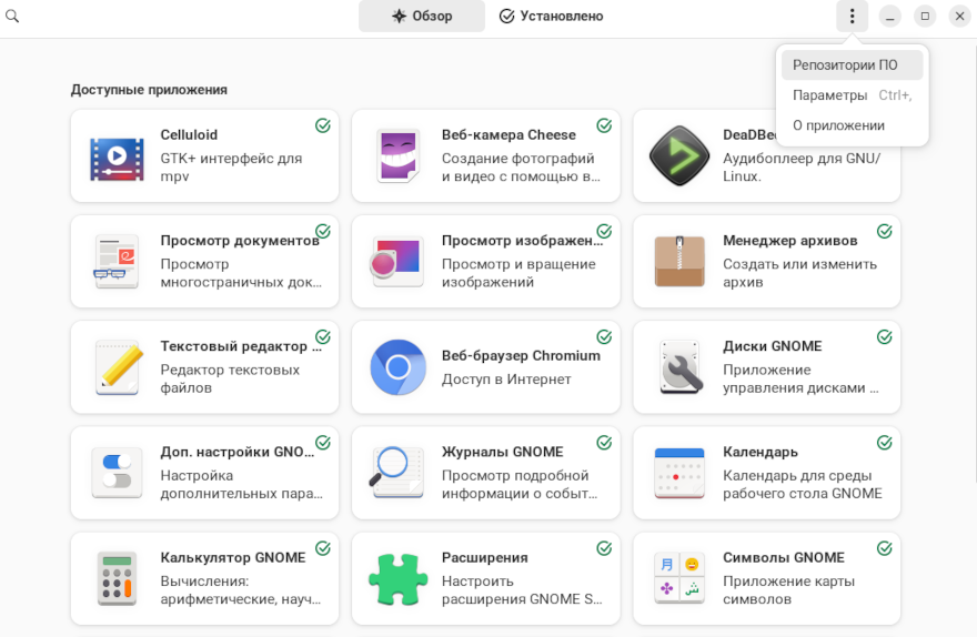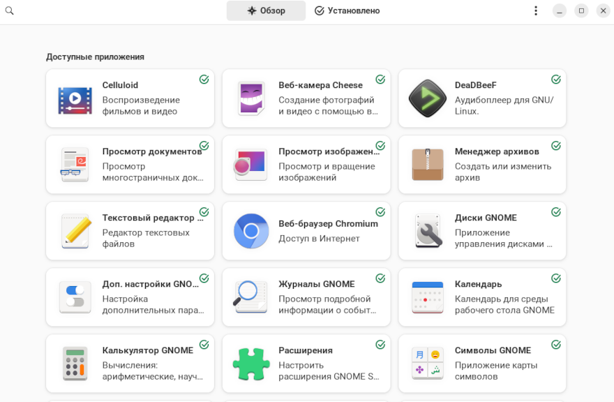 Во вкладке «Обзор» представлены все приложения, доступные для загрузки.