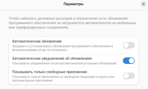 5.2.2. Включение и выключение автоматических обновлений и уведомлений о новых версиях ПО