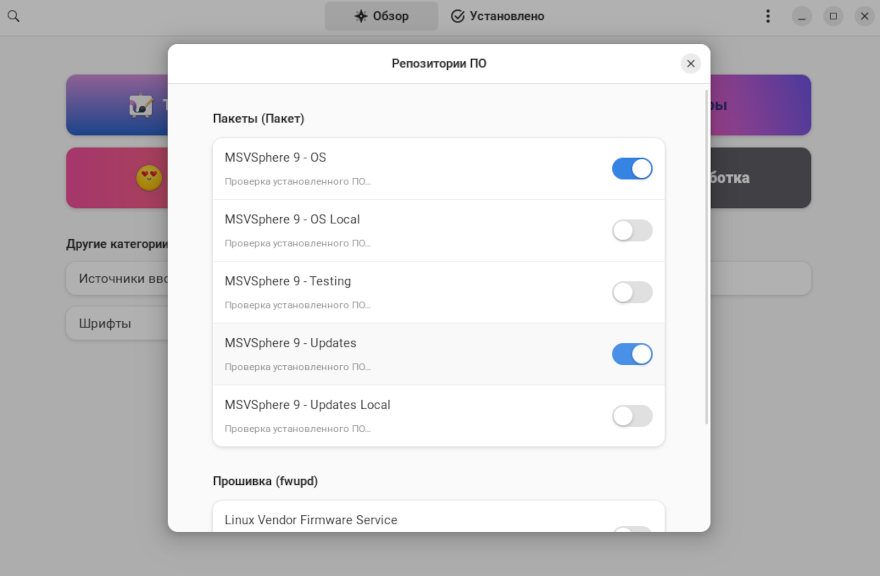 Обратите внимание, что для включения обновлений, выпущенных для исправления уязвимостей или ошибок, должен быть включён репозиторий Updates. Для выполнения этих действий требуются права администратора!