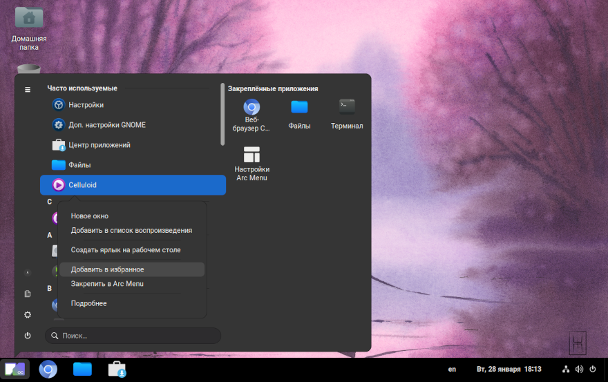 Чтобы добавить или удалить приложение из «Избранного», нажмите на значок приложения в списке задач правой клавишей мыши и выберите «Добавить в избранное»/ «Удалить из избранного».