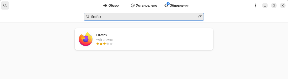 Наберите «firefox» в поле поиска и нажмите на «Firefox» в результатах.