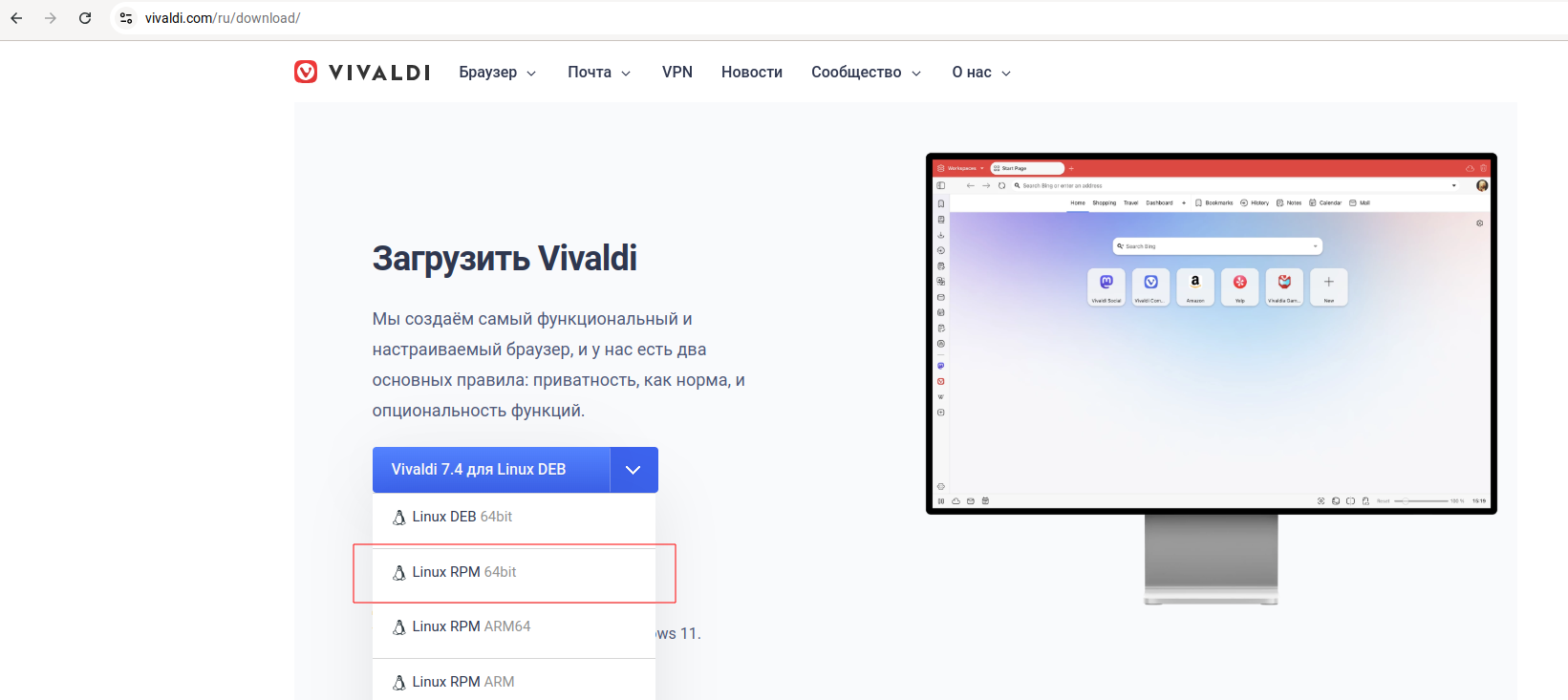 $ cd Загрузки/ $ sudo dnf install vivaldi-stable*.rpm