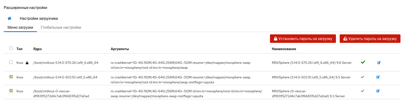 Расширение Bootloader для Cockpit предоставляет интерфейс настройки параметров загрузчика операционной системы.