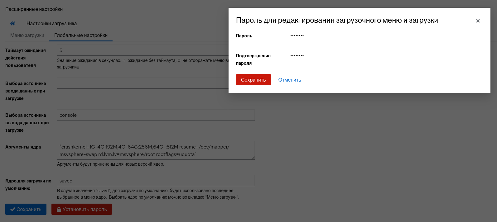 17.6.3.3. Создание пароля для загрузки и/или редактирования параметров загрузочной записи