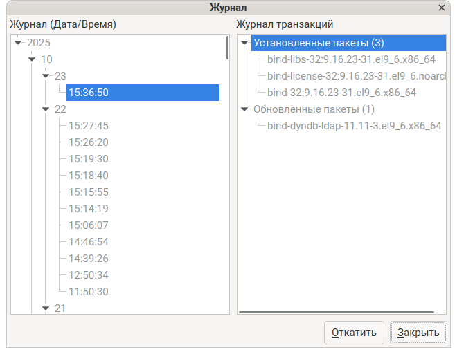 управлять источниками пакетов (репозиториями) и просматривать историю действий.