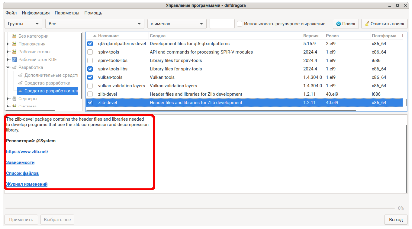 3.6. Графический интерфейс к менеджеру пакетов DNF dnfdragora