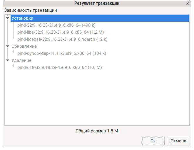 dnfdragora покажет полный список изменений в пакетах. Ознакомьтесь и нажмите «Ok». Подтвердив обновление пакета, приложение запросит пароль учётной записи пользователя, а после завершения обновления выведет информацию об успешном или не успешном обновлении пакета.