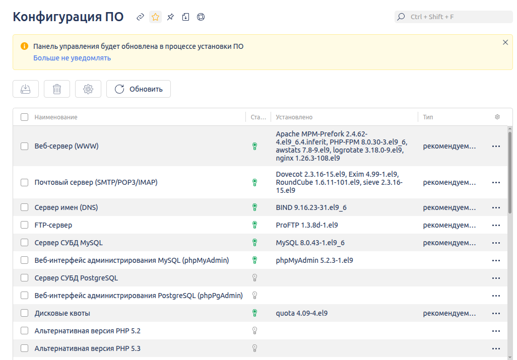 При первичной установке ispamanger и активации модуля ОС МСВСфера все необходимые пакеты будут установлены автоматически. Стандартная установка с помощью модуля описана в статье «Установка на систему с панелью управления ispmanager».