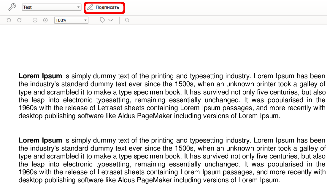 Для того чтобы подписать документ, нужно его открыть в приложении «Сургуч». Для этого нажмите на кнопку «Открыть» и выберите нужный pdf-файл, а после нажмите на кнопку «Подписать».